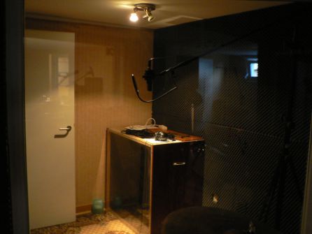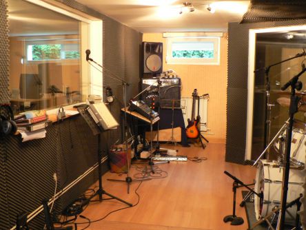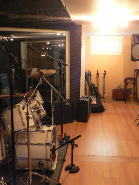 Le studio possède 3 cabines. Comme vous pourrez le voir sur la page Plan Du Studio, la cabine centrale, de grande superficie, est équipée d'une batterie complète mise à disposition, de plusieurs amplis, de retours monitoring et d'une pléthore de micros. Les deux cabines sur les cotés de la cabine centrale ont une surface inférieure à la cabine centrale et peuvent accuellir tous types de prises de sons.