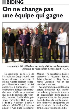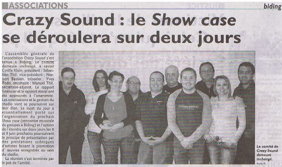 Il est formé une association dénommée Association "CRAZY SOUND" régie par les articles 21 à 79 du code civil local maintenu en vigueur dans les départements du Haut-Rhin, du Bas-Rhin, et de la Moselle par la loi d'introduction de la législation civile francaise du 1er juin 1924 ainsi que par les statuts de l'association.