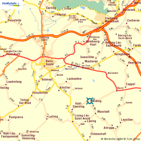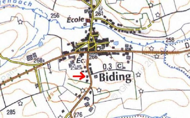 Pour trouver la petite commune de BIDING (57660) facilement, nous vous conseillons de sortir de l'autoroute A4/E25 à hauteur de la sortie SAINT-AVOLD. Prendre la direction Saint-Avold, traverser cette commune en suivant la direction ALTVILLER. Après Altviller, une côte assez prononcée sur votre gauche vous fera traverser VAHL-EBERSING, jusqu'au prochain village qui est BIDING.